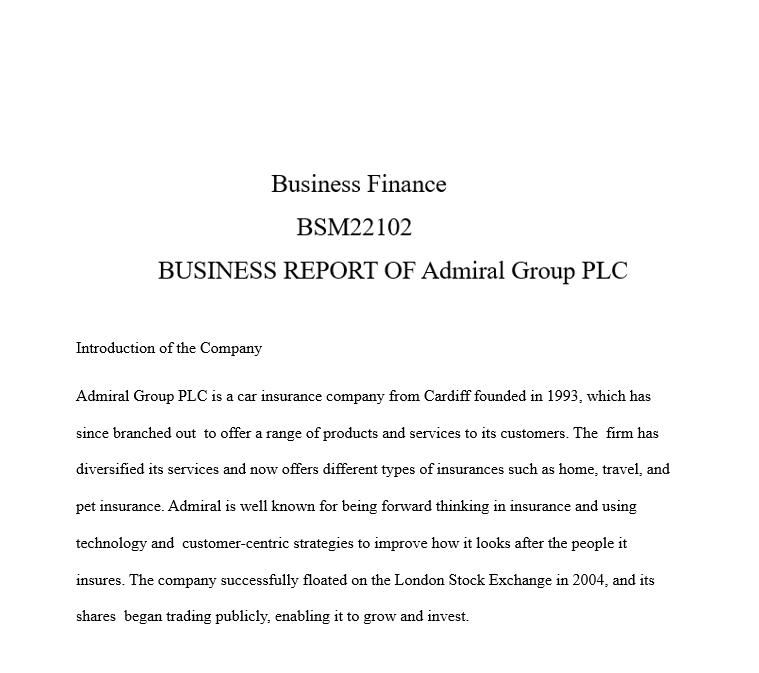 ESSAY UNIVERSITY - BUSINESS FINANCE - BUSINESS REPORT